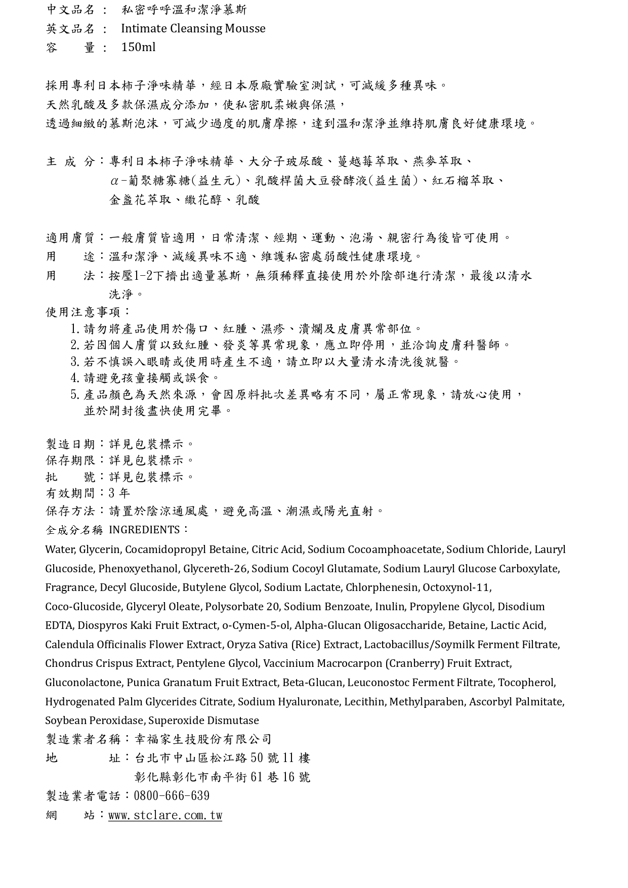 ◆益生菌、乳酸添加,維持私密肌健康