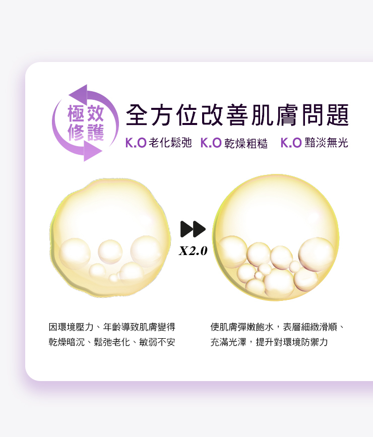 ◆倍速賦活緊緻,肌膚彈、嫩、亮