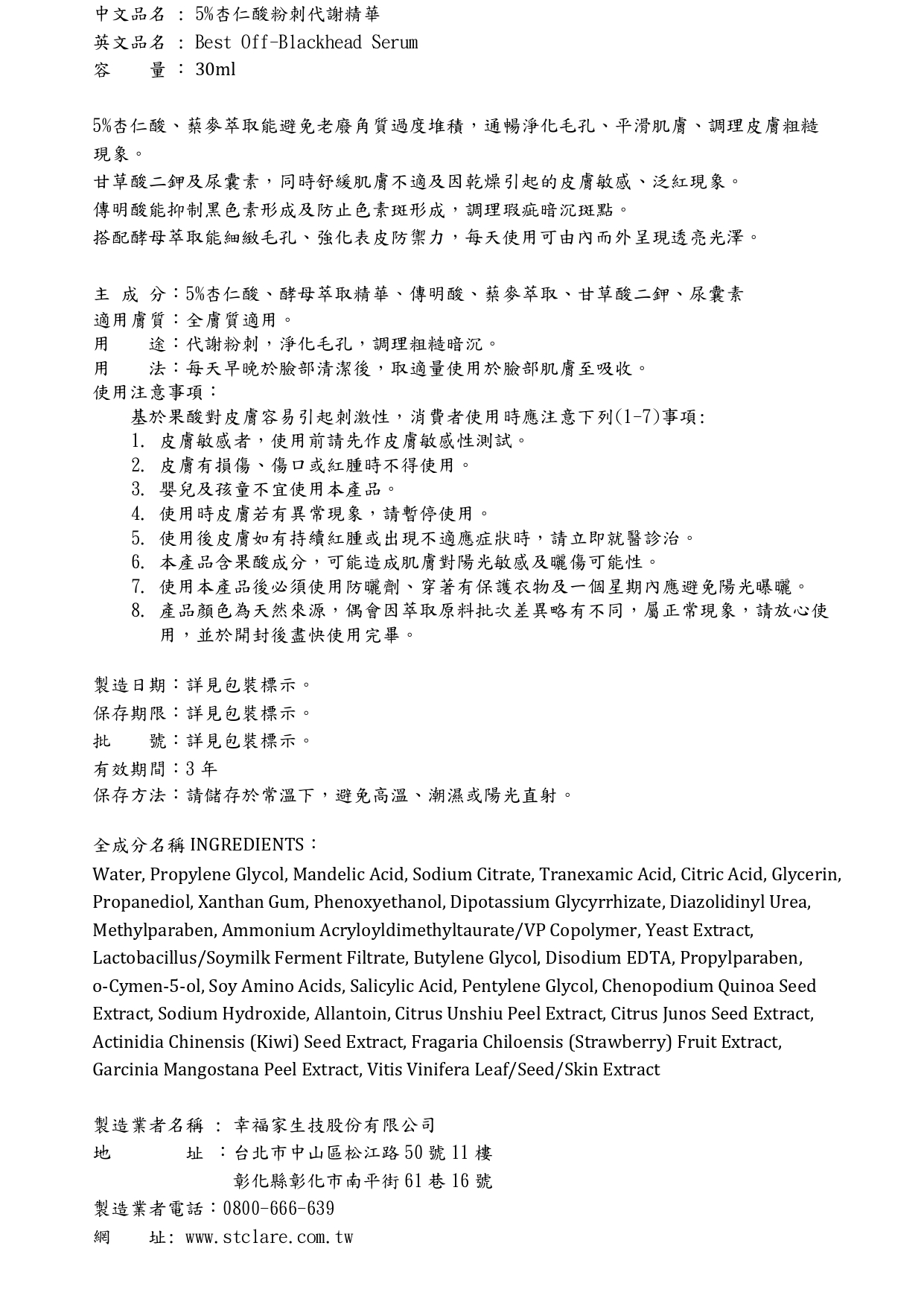 ◆5%杏仁酸x蔾麥萃取x酵母萃取精華