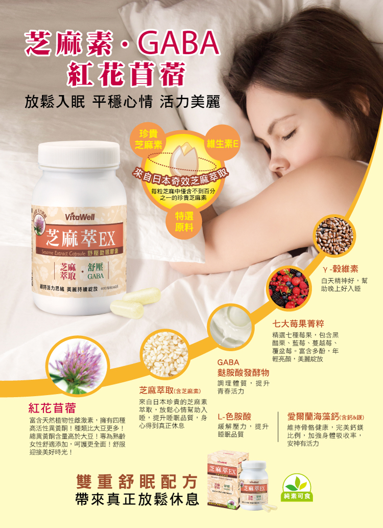 ◆珍貴芝麻素+GABA麩胺酸發酵物+紅花苜蓿