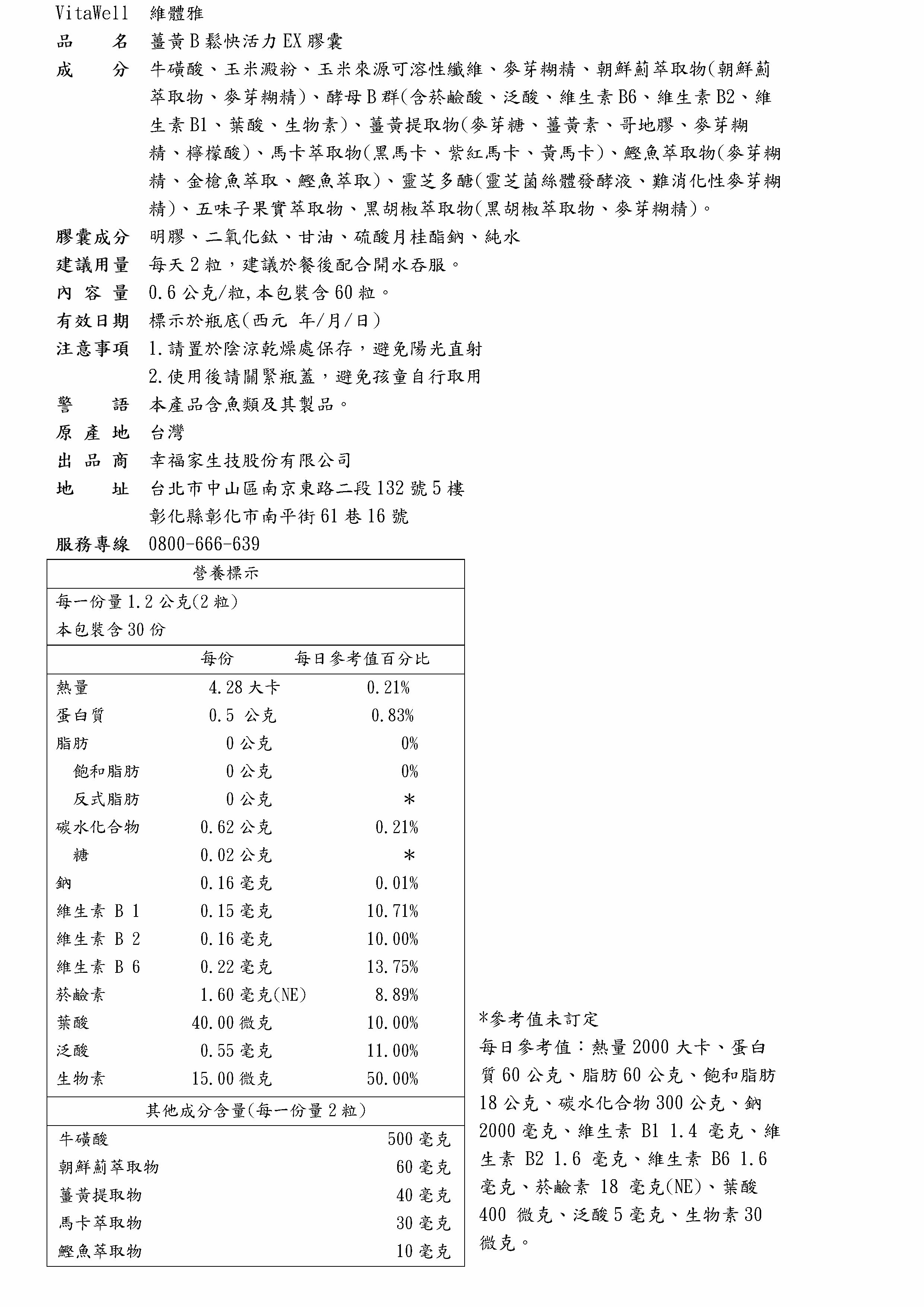 薑黃B鬆快活力EX膠囊60粒