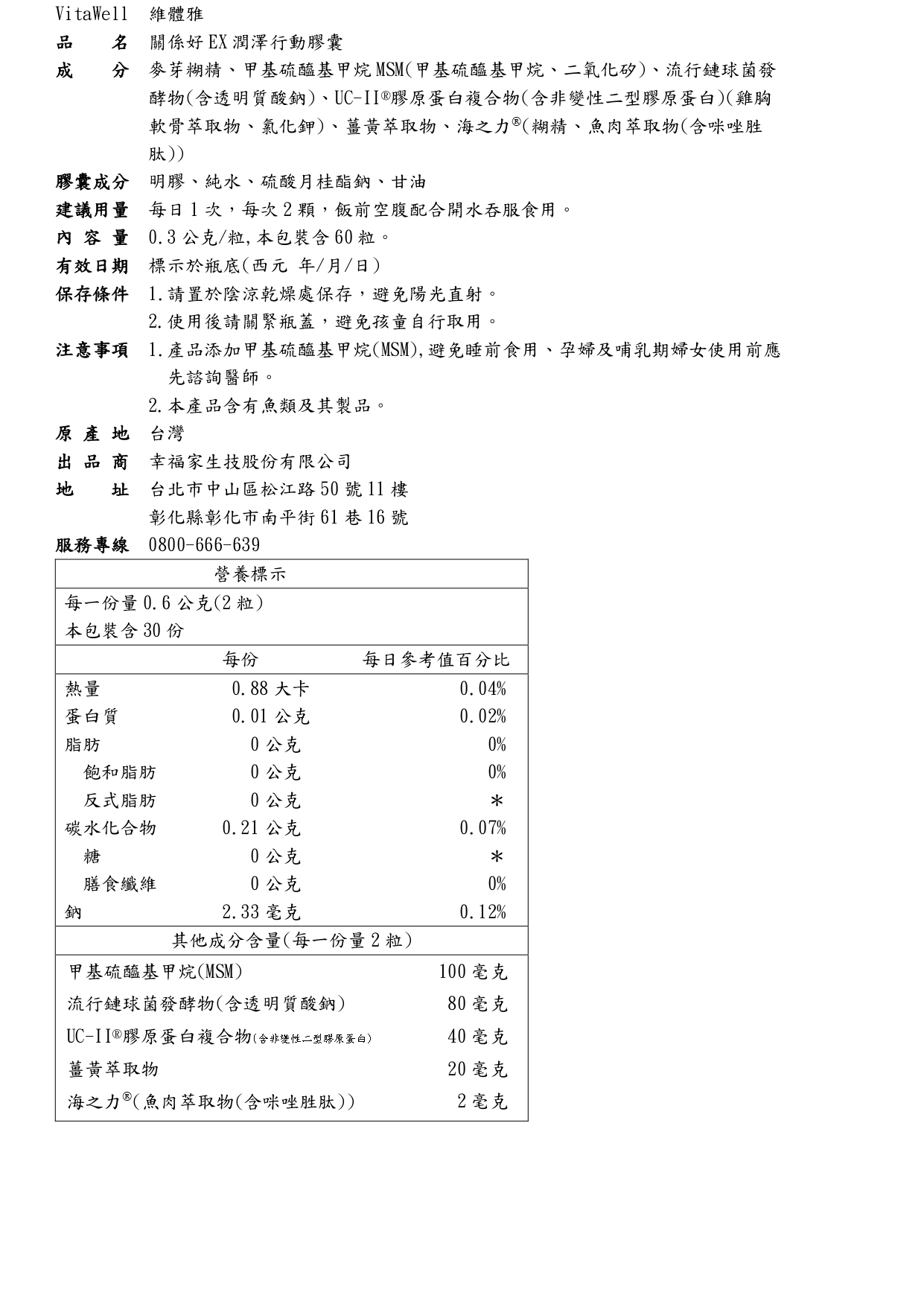 ◆美國專利薑黃素、 MSM舒適活力配方