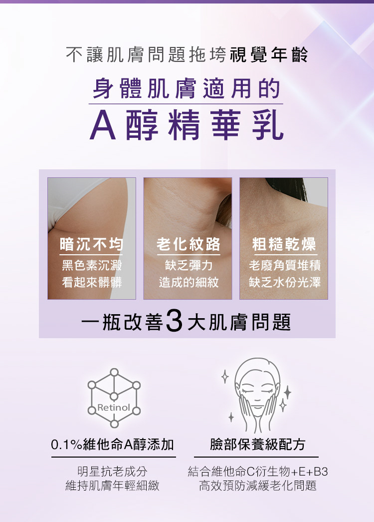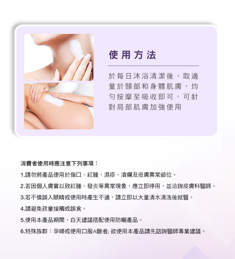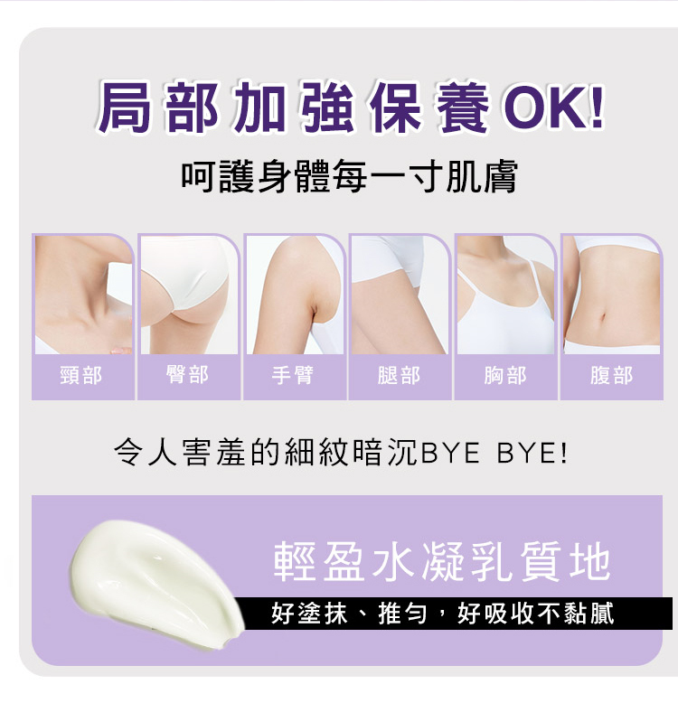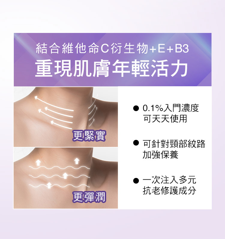 ◆頸臀紋路加強保養,注入多元抗老修護成分