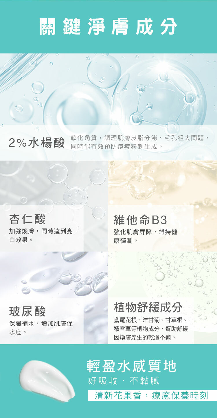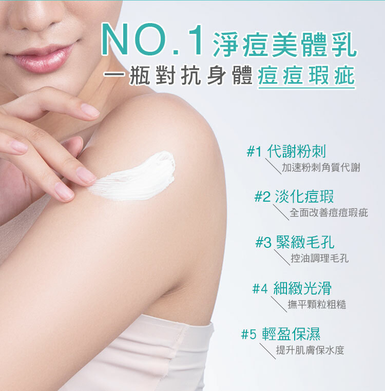 ◆杏仁酸加速煥膚,身體肌膚淨痘無瑕