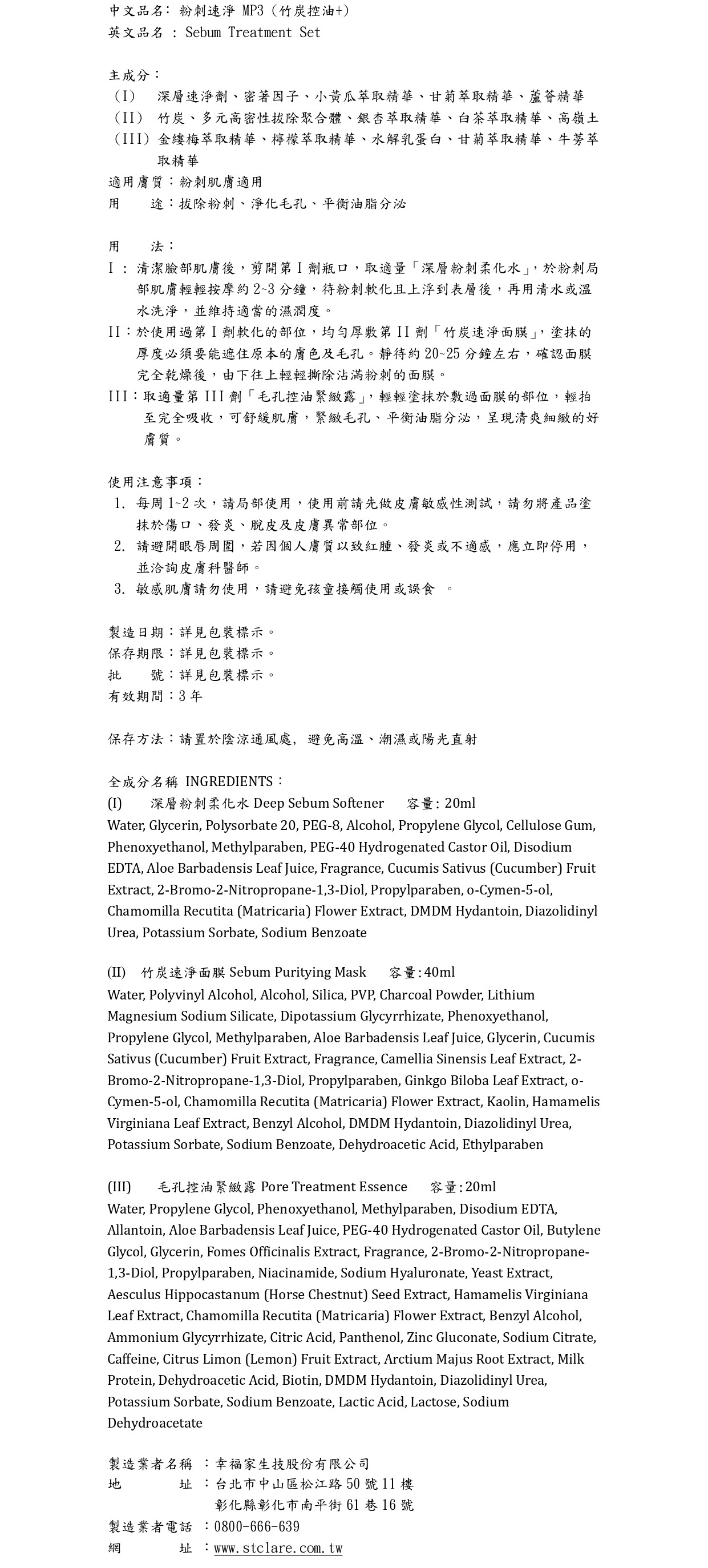 粉刺速淨MP3-竹炭控油(3劑1組)
